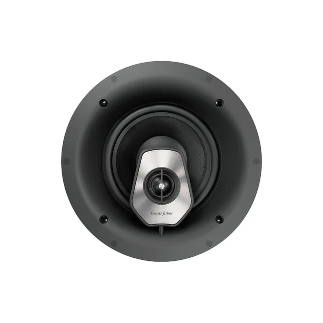 Unlike standard “industrial” in-ceiling speakers, the Sonus Faber Palladio PC-582 is treated with the same care as the brand’s flagship floorstanding models. The baffle is finished in fine leather, a signature Sonus Faber touch that dampens diffraction and ensures a more focused, natural soundstage.